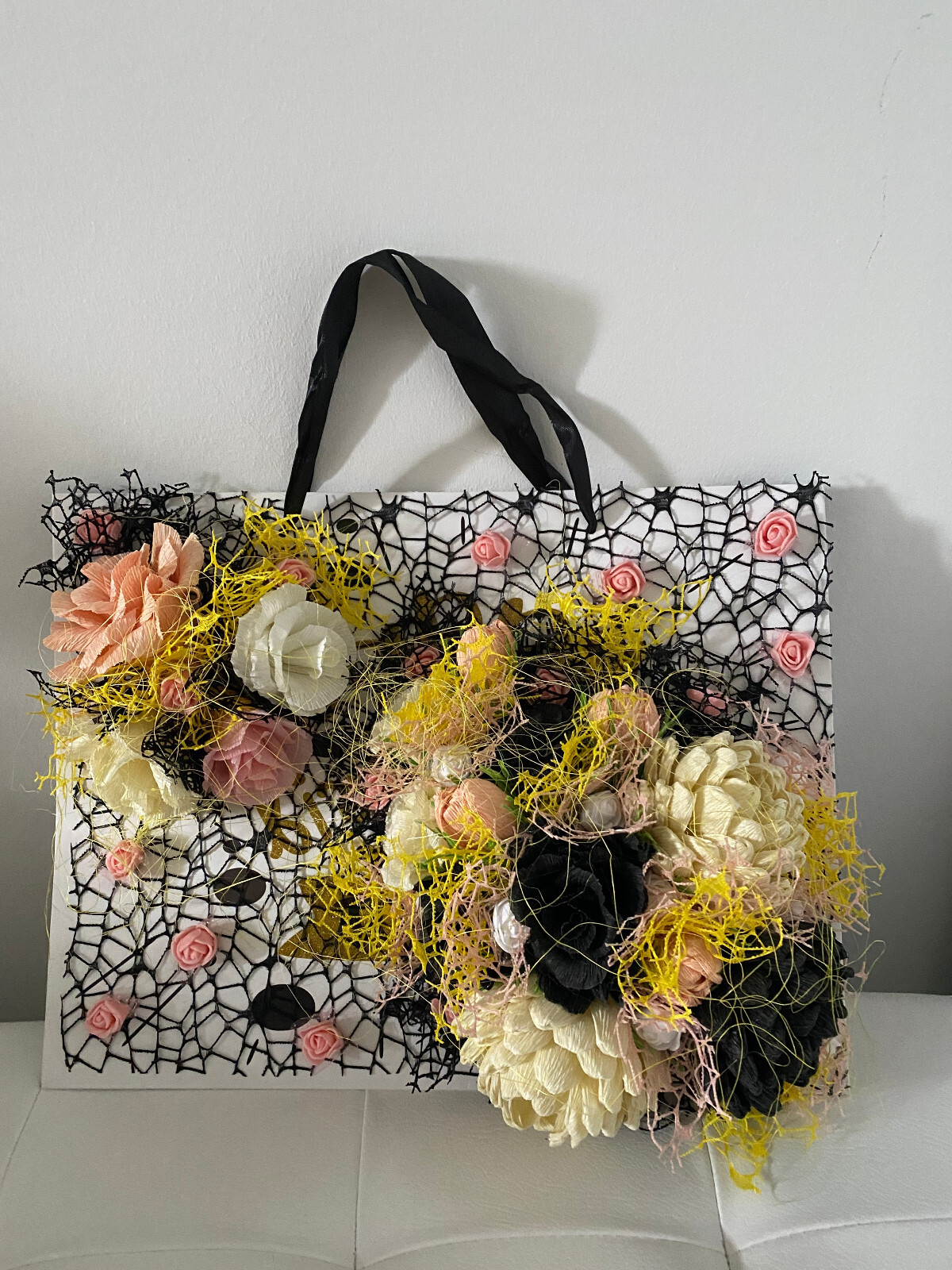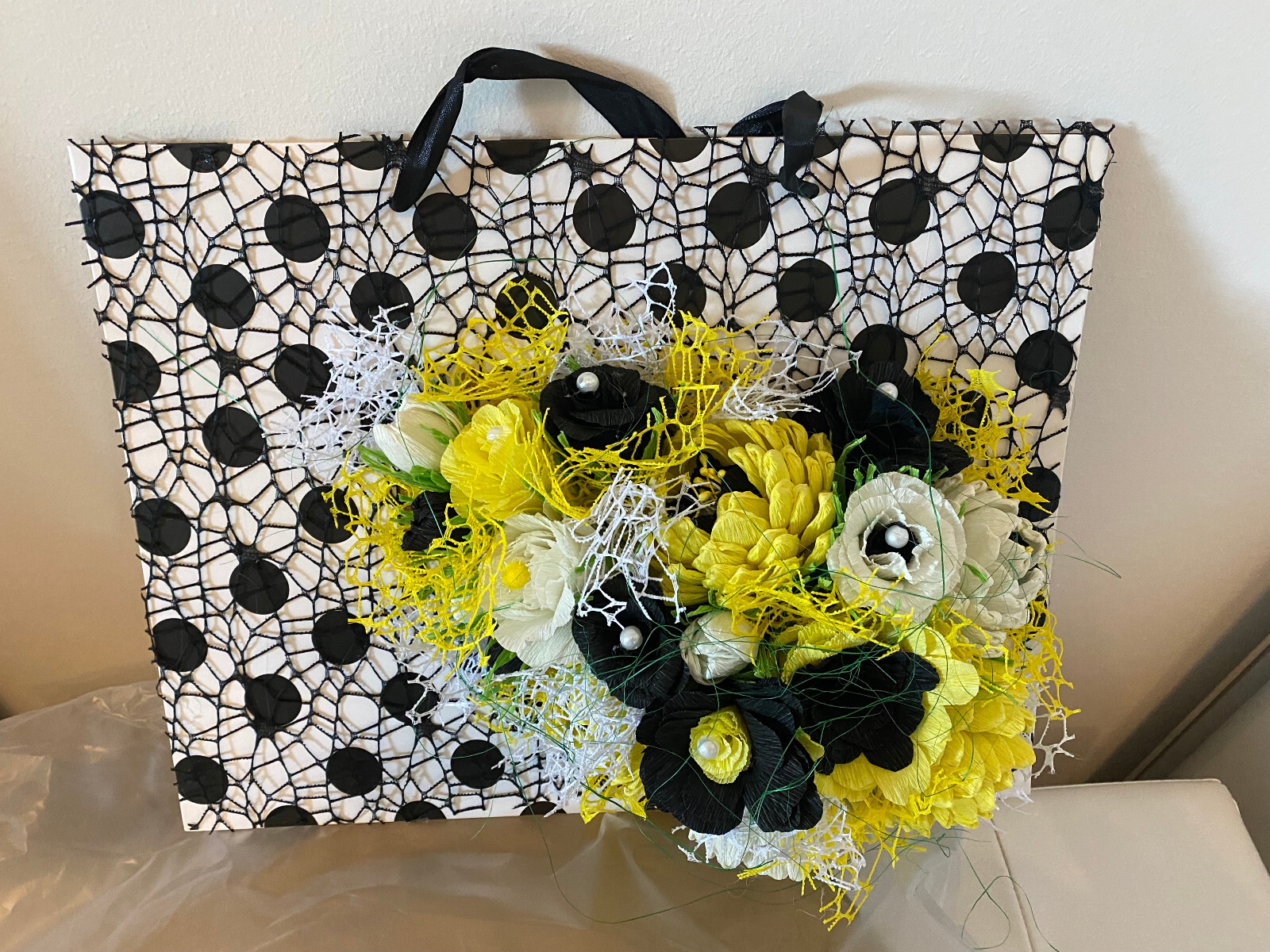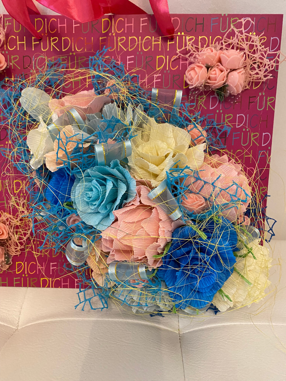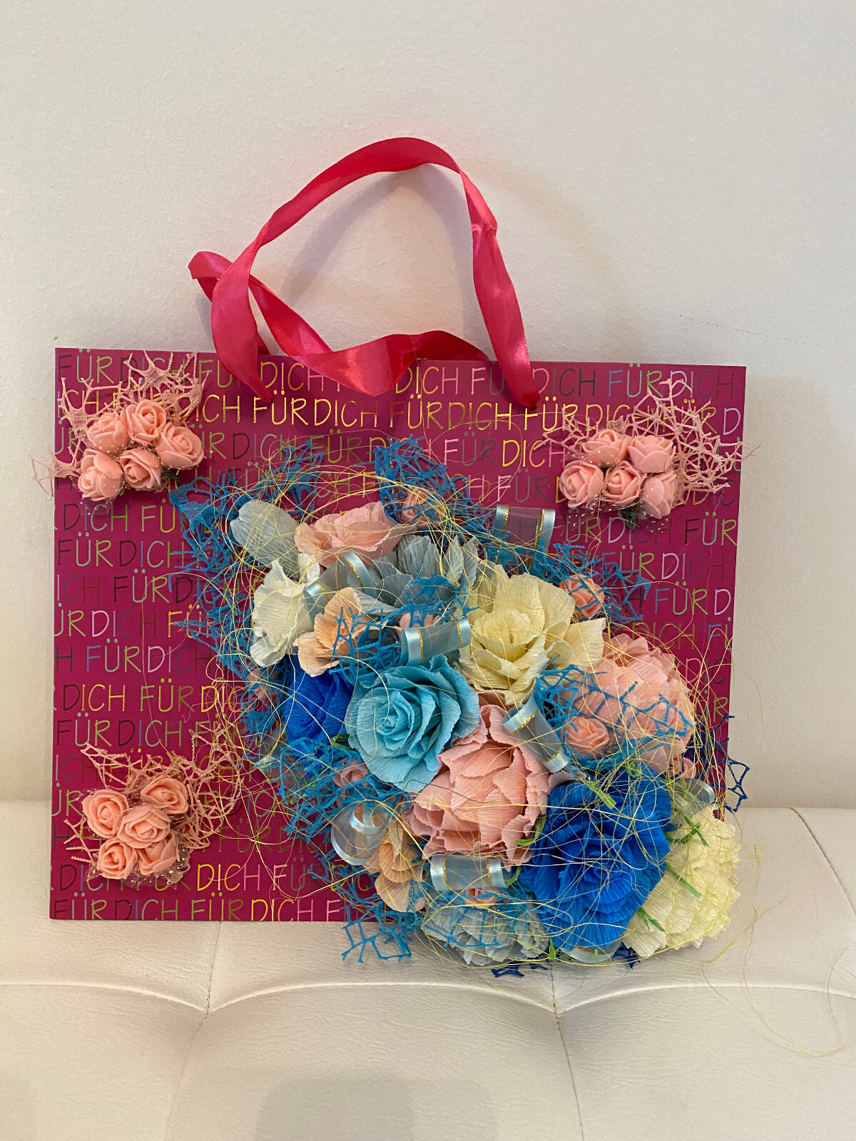 🌸Geschenktüte 32 x 23 x 11 cm mit handgefertigten Blumen🌸