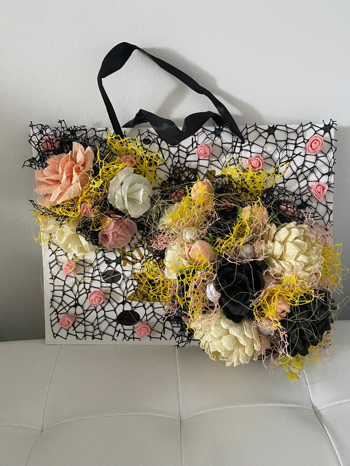 Geschenktüte – Handgefertigte Blumen, 32 x 23 x 11 cm – Neu