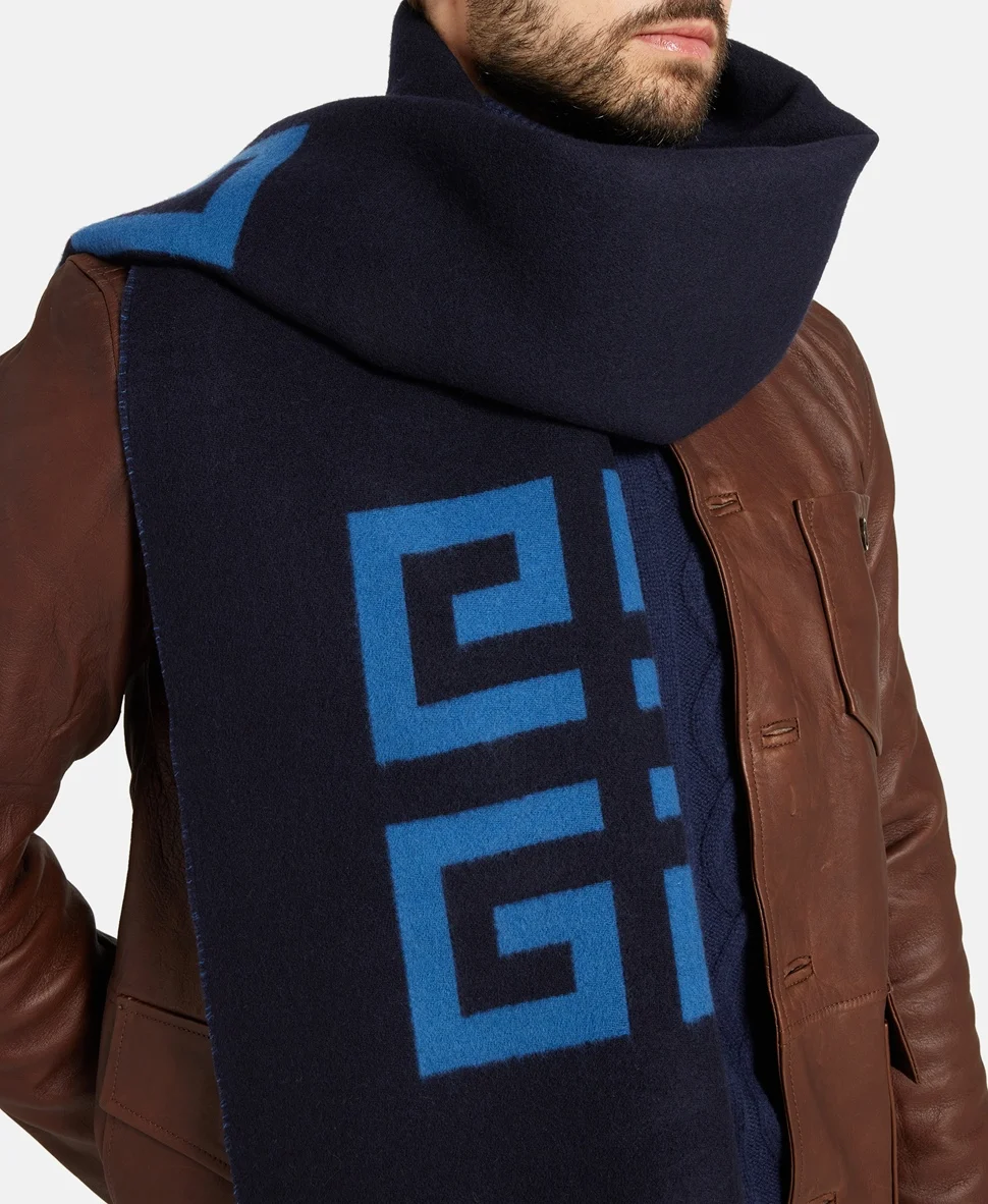 Luxuriöser Wollschal von Givenchy, klassisch-elegant in dunkelblau.