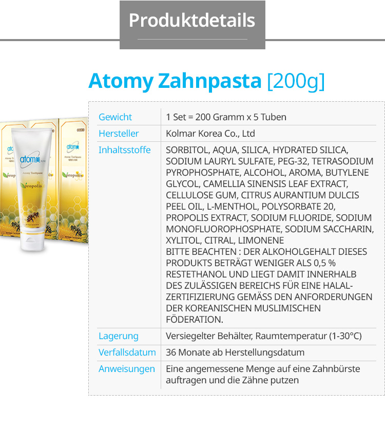 ATOMY ZAHNPASTA mit Propolis Extrakt Xylit Grüntee Extrakt