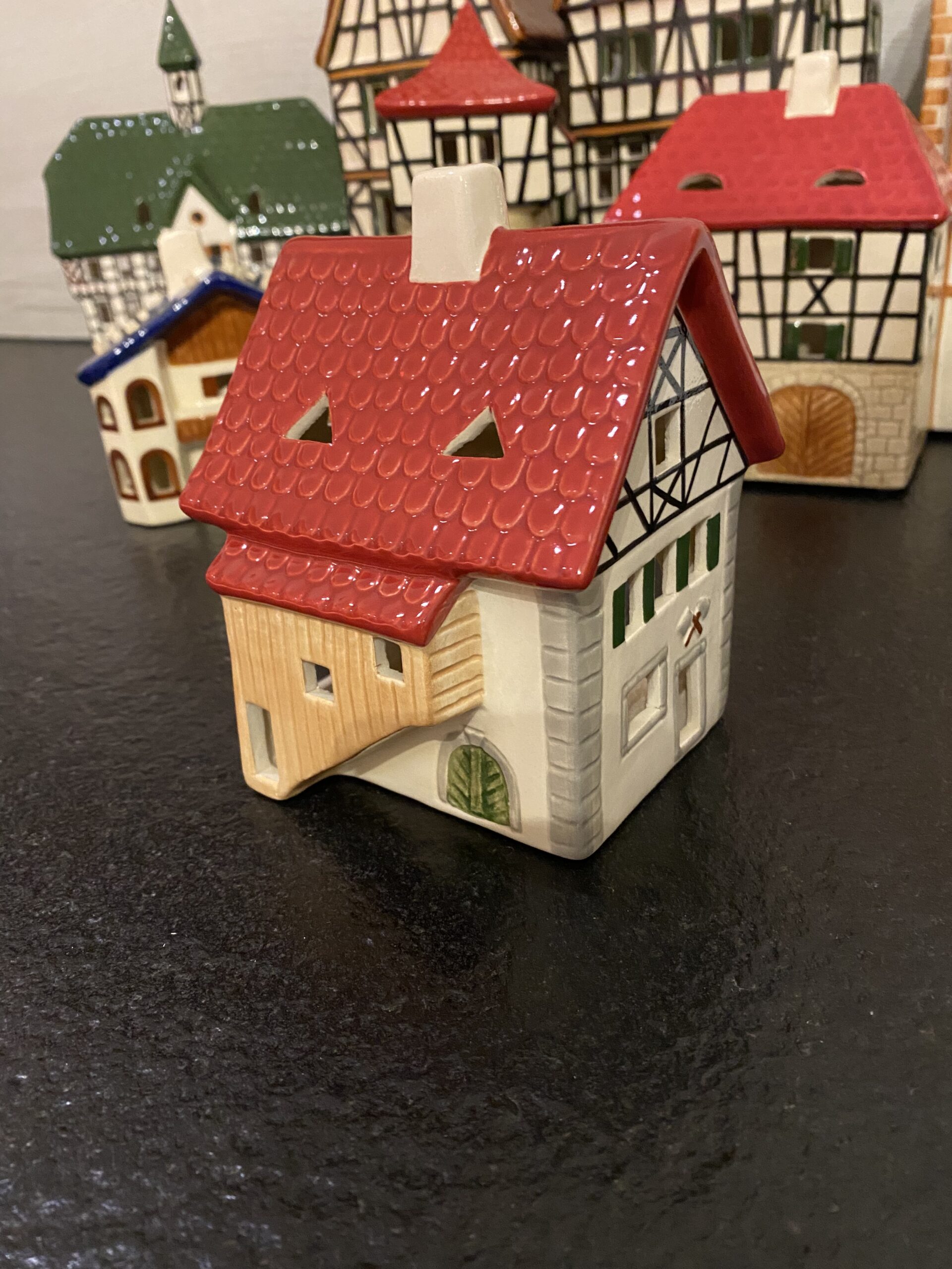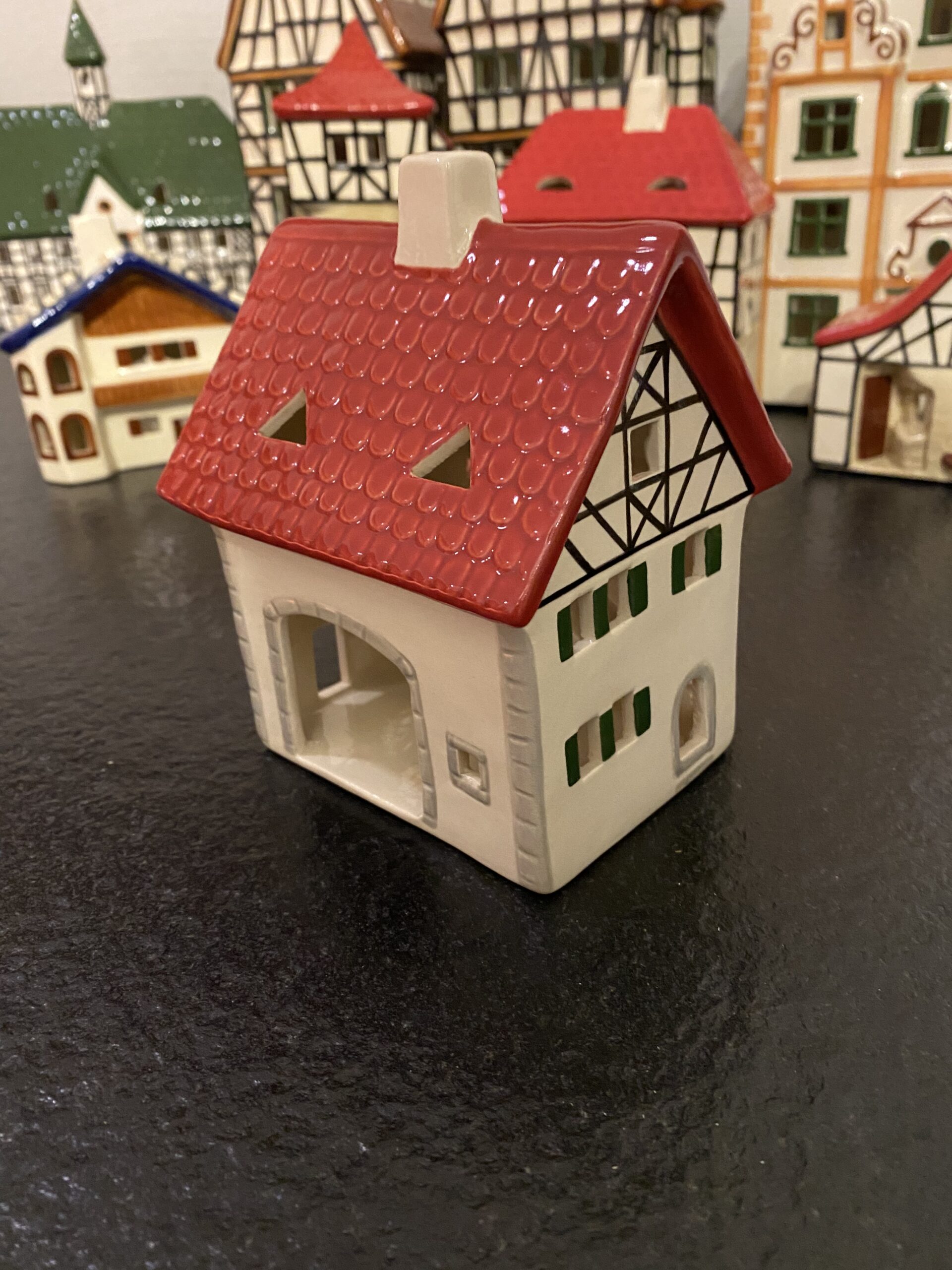 Dieses Sammlerstück, ein echtes Unikat, stammt aus einer Zeit, in der handwerkliches Geschick und Liebe zum Detail bei Weihnachtsdekorationen im Vordergrund standen. Ideal für Liebhaber saisonaler und festlicher Dekorelemente, repräsentiert dieses Haus in Miniaturform die warme, heimische Atmosphäre der Feiertage und ist ein Muss für jede Sammlung aus dem Bereich Dörfer & Häuser.