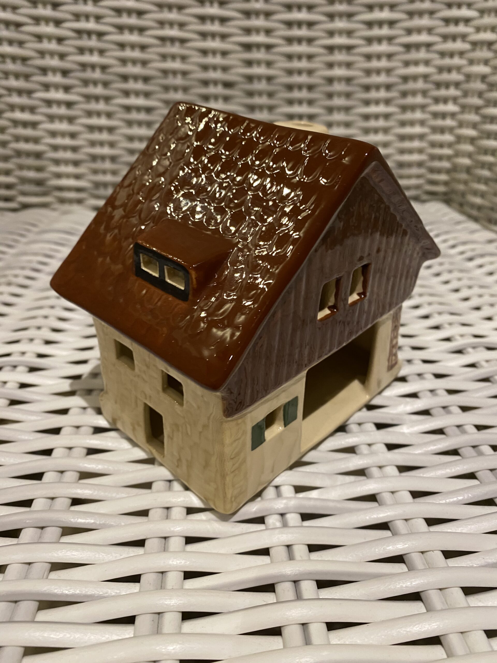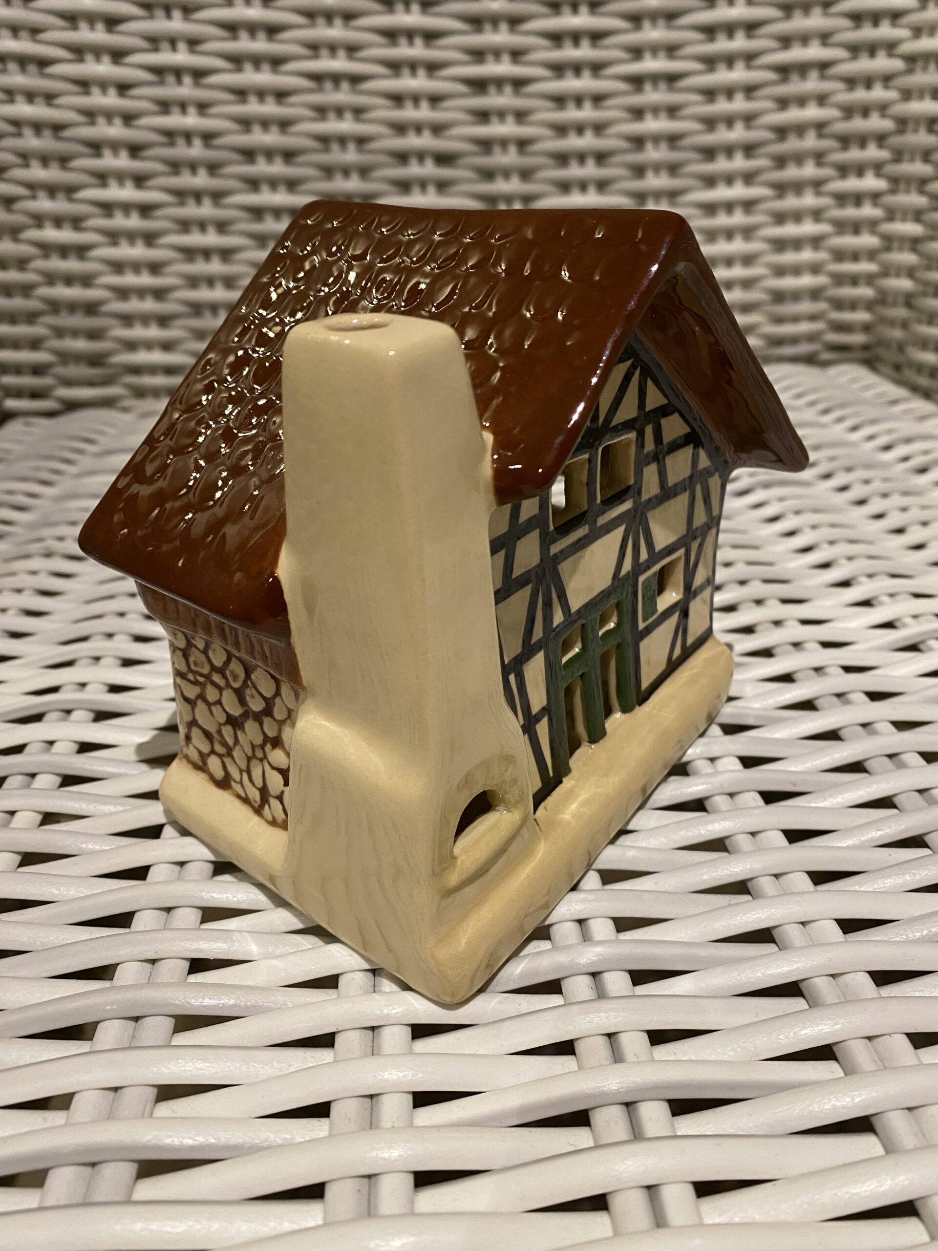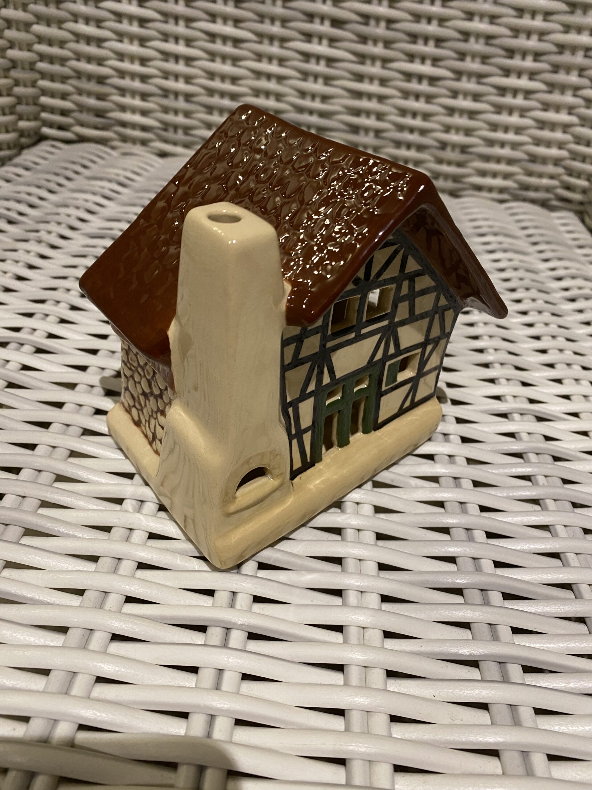 Dieses Sammlerstück, ein echtes Unikat, stammt aus einer Zeit, in der handwerkliches Geschick und Liebe zum Detail bei Weihnachtsdekorationen im Vordergrund standen. Ideal für Liebhaber saisonaler und festlicher Dekorelemente, repräsentiert dieses Haus in Miniaturform die warme, heimische Atmosphäre der Feiertage und ist ein Muss für jede Sammlung aus dem Bereich Dörfer & Häuser.