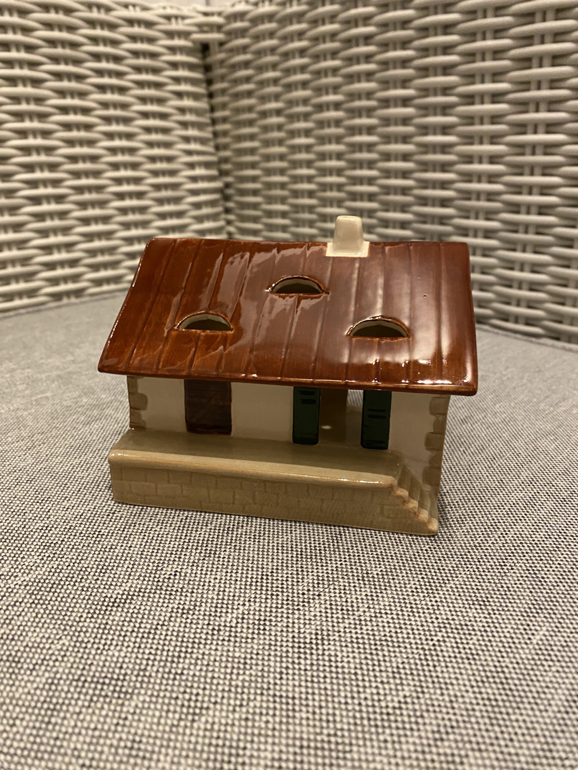 Dieses Sammlerstück, ein echtes Unikat, stammt aus einer Zeit, in der handwerkliches Geschick und Liebe zum Detail bei Weihnachtsdekorationen im Vordergrund standen. Ideal für Liebhaber saisonaler und festlicher Dekorelemente, repräsentiert dieses Haus in Miniaturform die warme, heimische Atmosphäre der Feiertage und ist ein Muss für jede Sammlung aus dem Bereich Dörfer & Häuser.